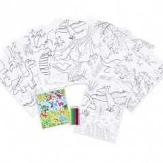 This fantastic colouring set includes 8 Dinosaur colouring sheets, 6 mini colouring pencils, and 1 sticker sheet. They are perfect party activities and classroom fun. Size: A4 / 21cm x 30cm.